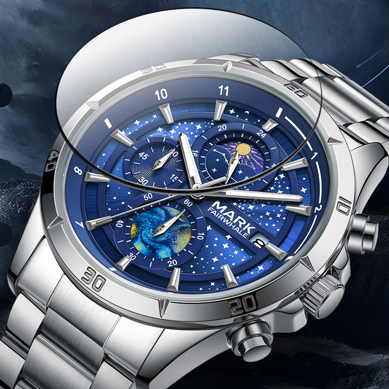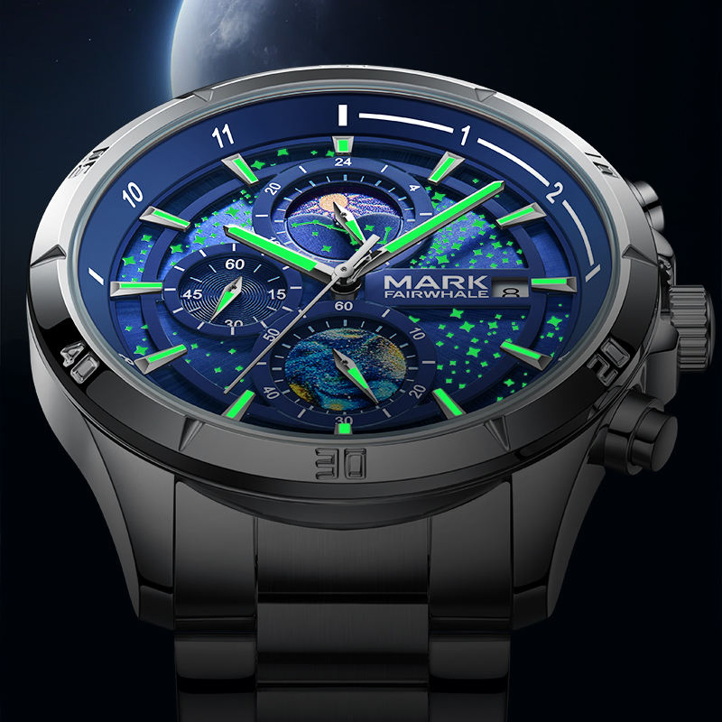 Feature: Waterproof, Luminous Hands, Moon Phase, Day/Date