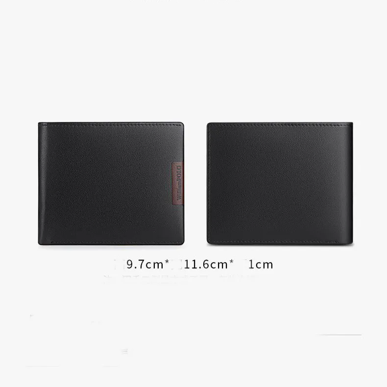 Color: BlackBrand: William PoloUpper Material: Genuine LeatherFolding: 2 FoldPattern: Solid ColorHardness: SoftLength: 11.6 cmWidth: 9.7 cm