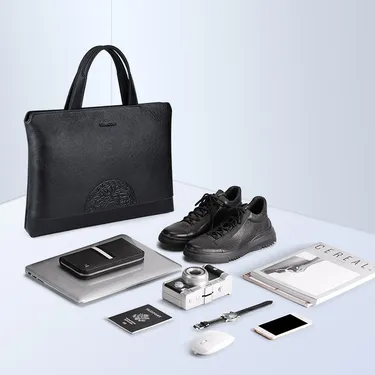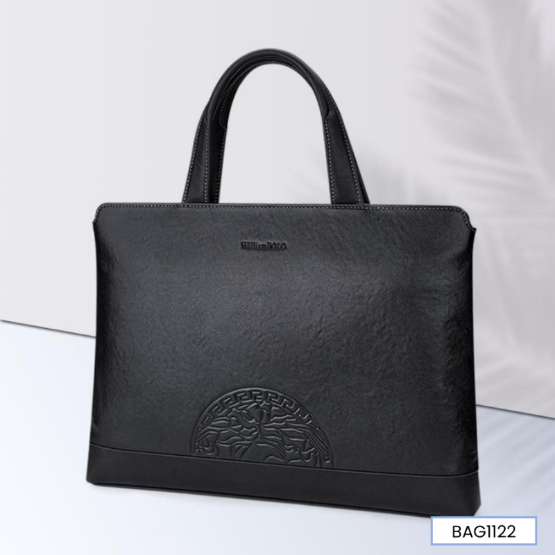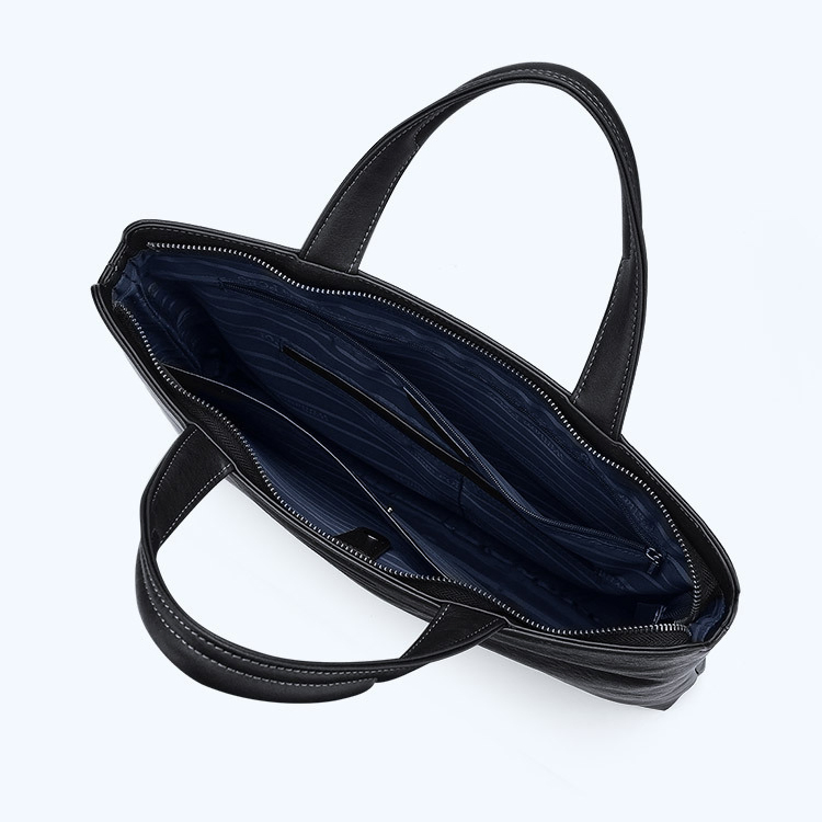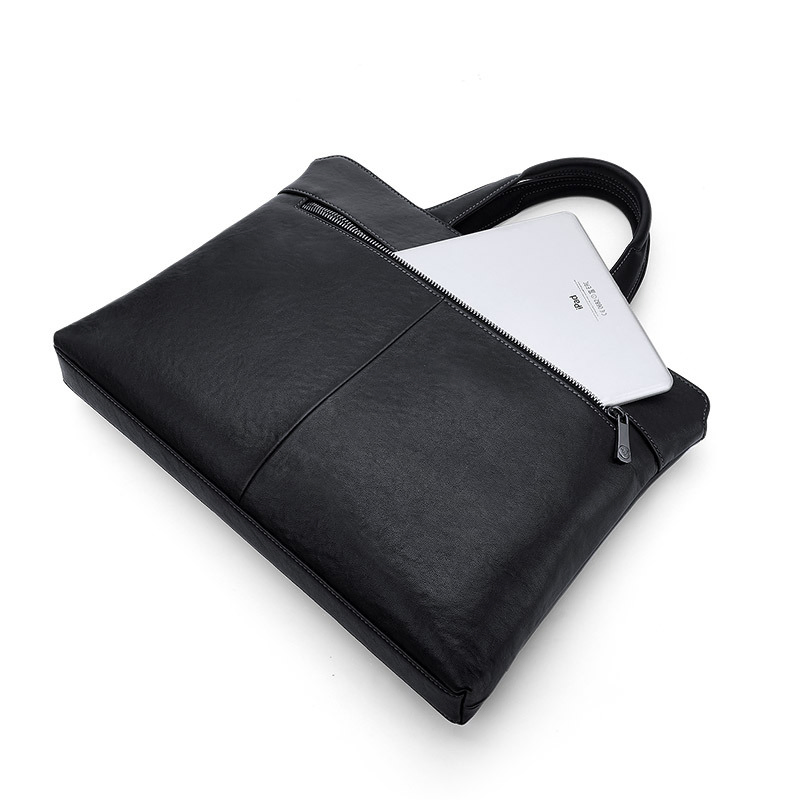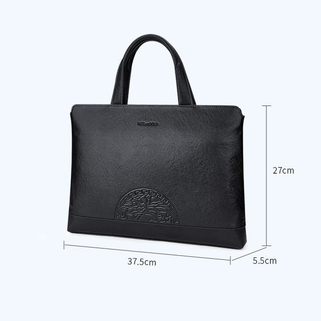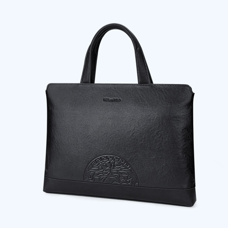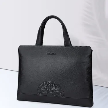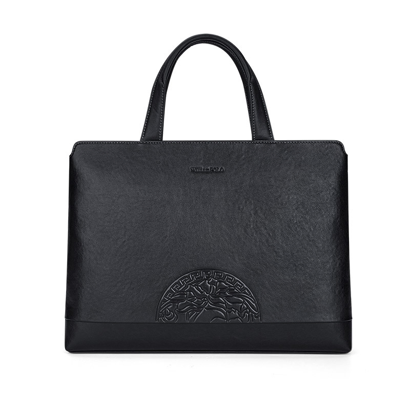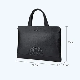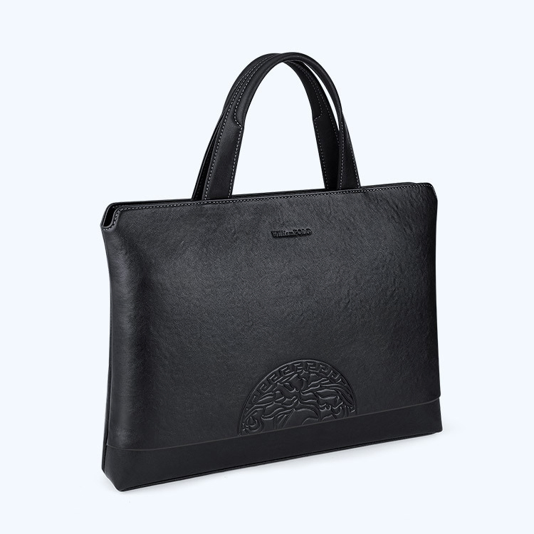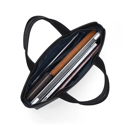 Color: Black Brand: William POLO Upper Material: Genuine Leather (Cowhide) Number of Shoulder straps: None Opening Method: Zipper Hardness: Soft Shape: Handbag Pattern: Solid Color Lining Material: Polyester Size: 14.76" (L) x 10.62" (H) x 2.16" (W) Features: Multi-function, 14" Computer Compartment, Water proof