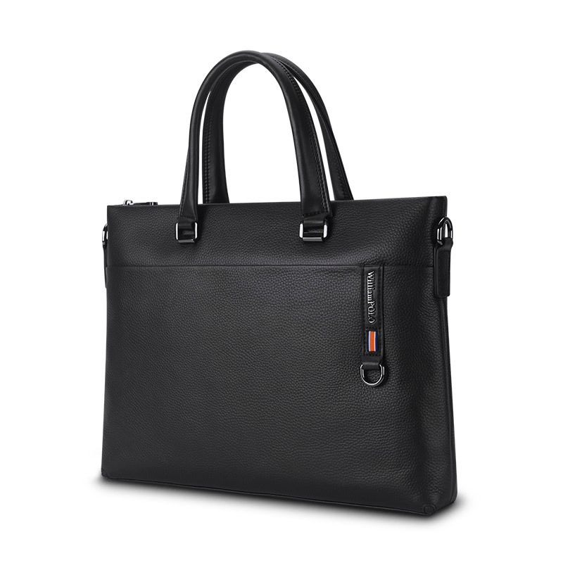 Color: BlackBrand: William POLOUpper Material: Genuine LeatherNumber of Shoulder straps: SingleOpening Method: ZipperHardness: SoftShape: HandbagPattern: Solid ColorLining Material: PolyesterSize: 14.76" (L) x 10.82" (H) x 2.16" (W)Features: Multi-function, 13" Computer Compartment, Water proofWeight: 1 kg