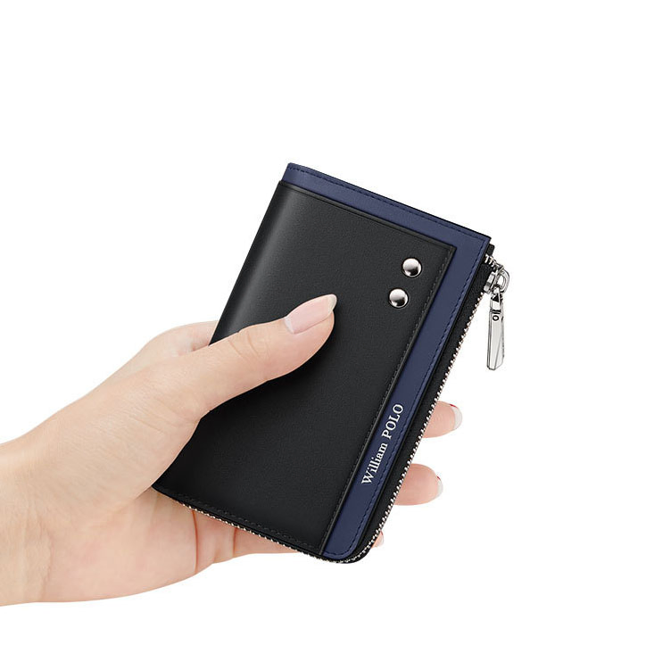 Color: BlackBrand: William PoloUpper Material: Genuine LeatherFolding: 2 FoldOpening Method: ZipperLining: PolyesterPattern: Solid ColorSize: 4.33" (H) x 2.75" (L) x 0.98" (W)Weight: 350 gm