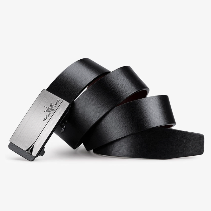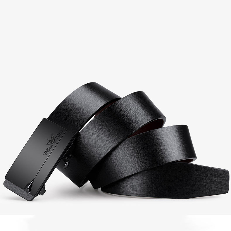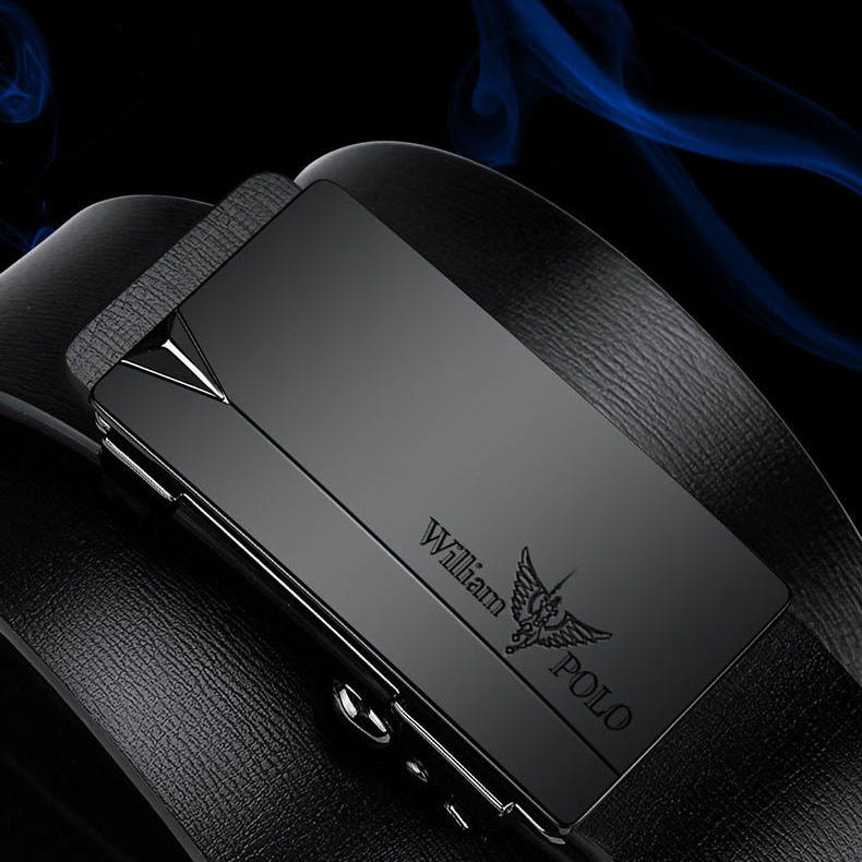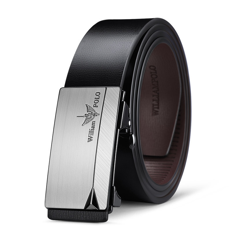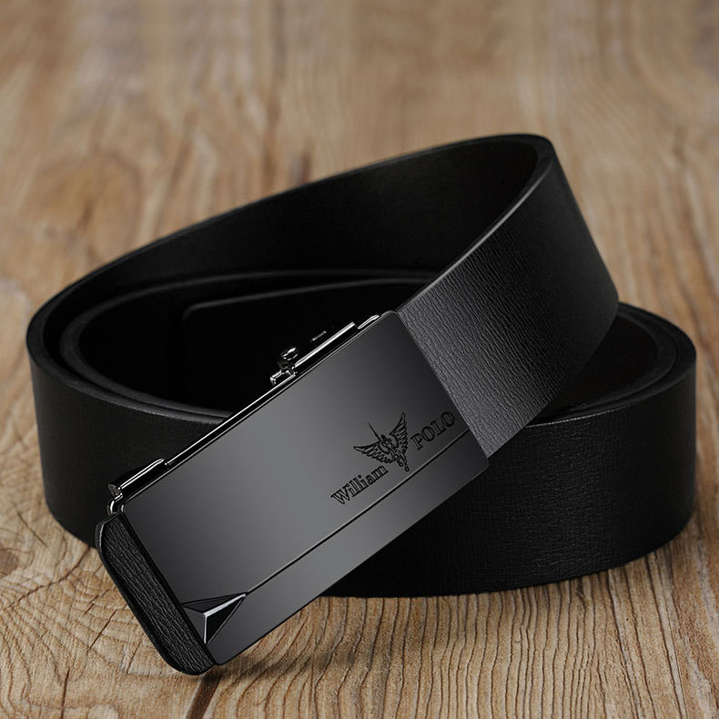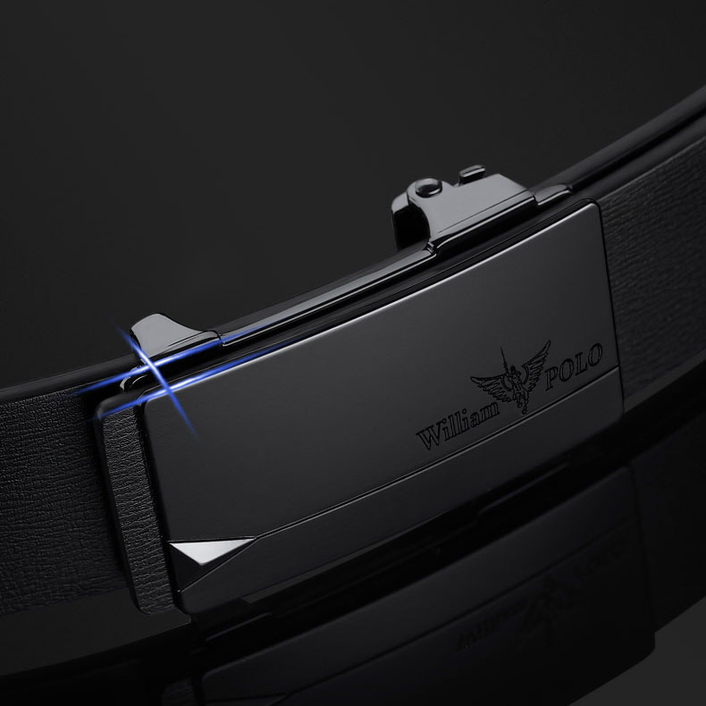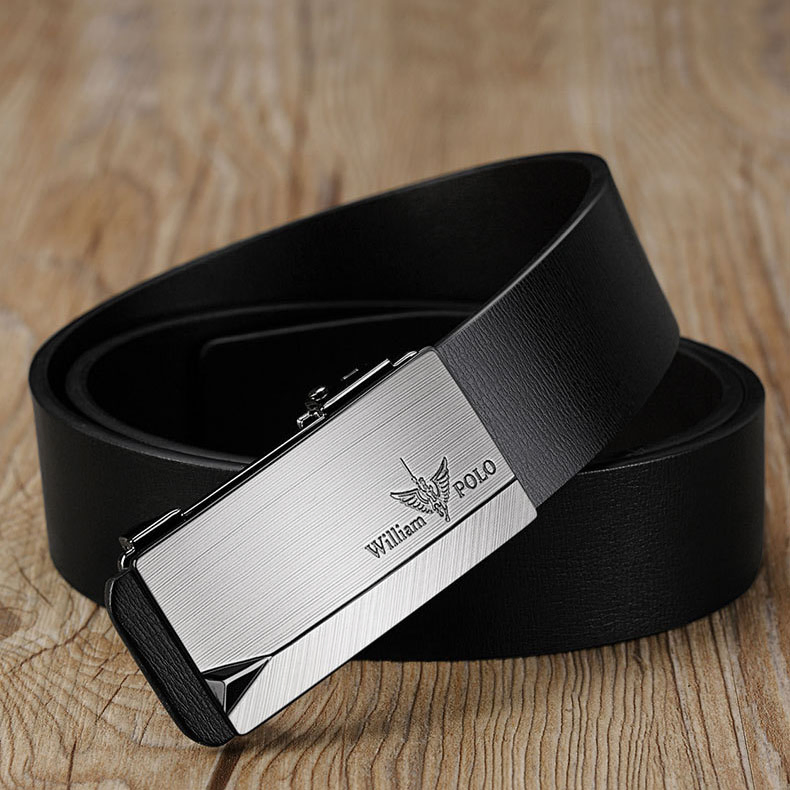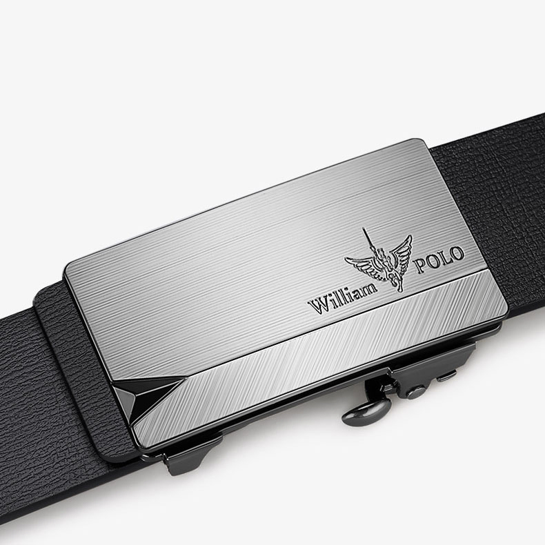 Buckle Color: Black & Silver ColorBelt Color: Black BeltBrand: William POLOUpper Material: Genuine LeatherFastening Method: Automatic BuckleLining: PolyesterPattern: Solid ColorLength: 120 cmWidth: 3.8 cmWeight: 350 gm