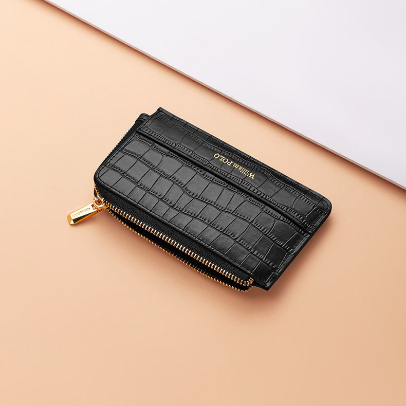 Color: Black, Red, WhiteBrand: William PoloUpper Material: Genuine LeatherOpening Method: ZipperLining: PolyesterPattern: Solid ColorSize: 5.19" (H) x 3.03" (L) x 0.39" (W)Weight: 350 gm