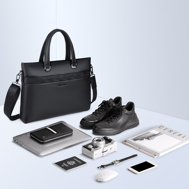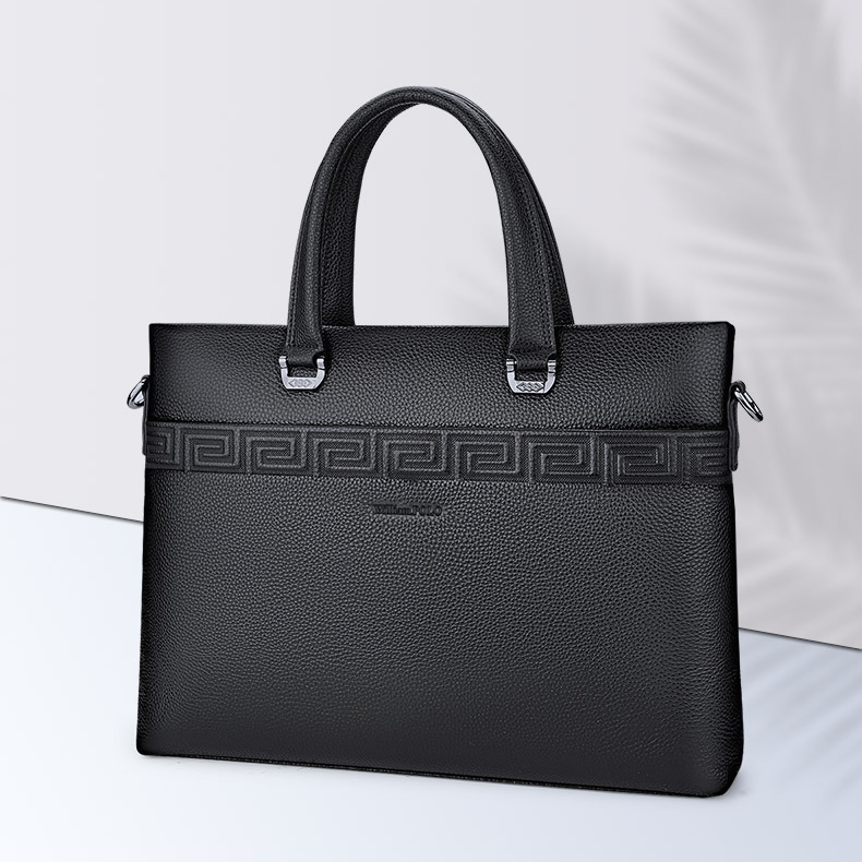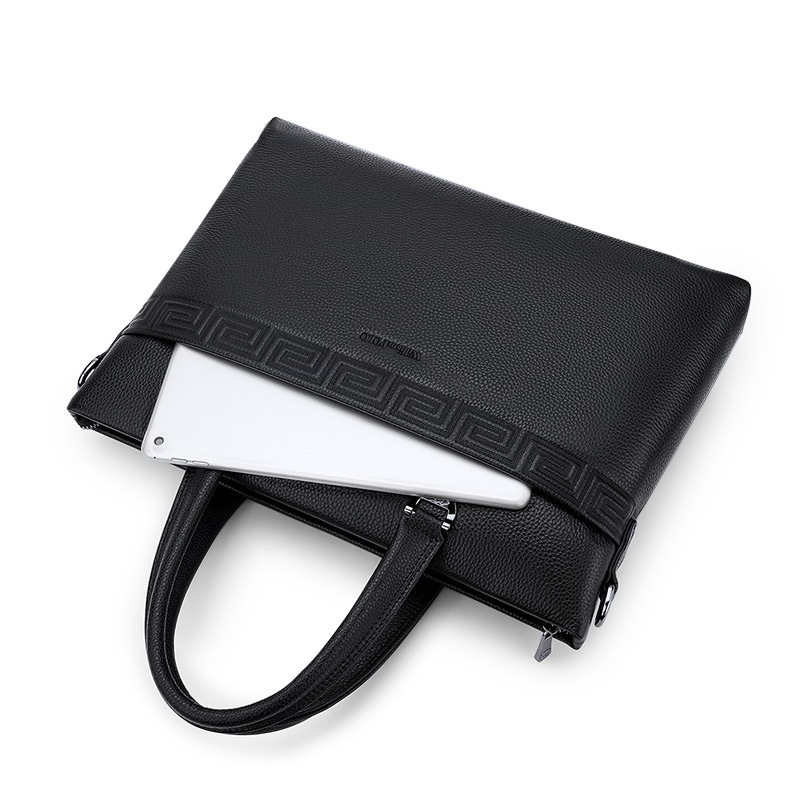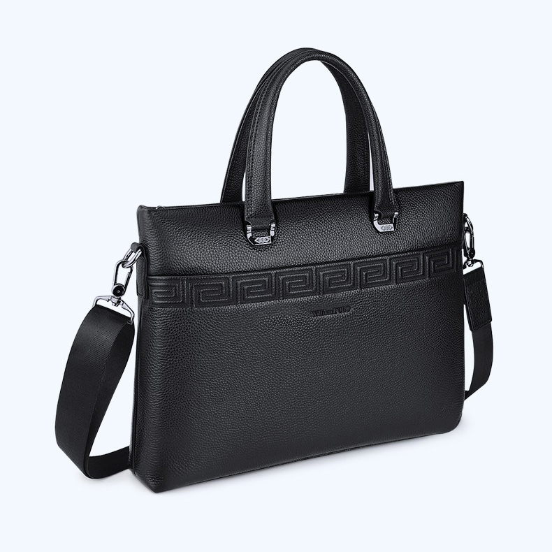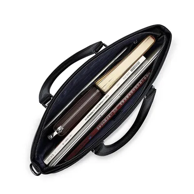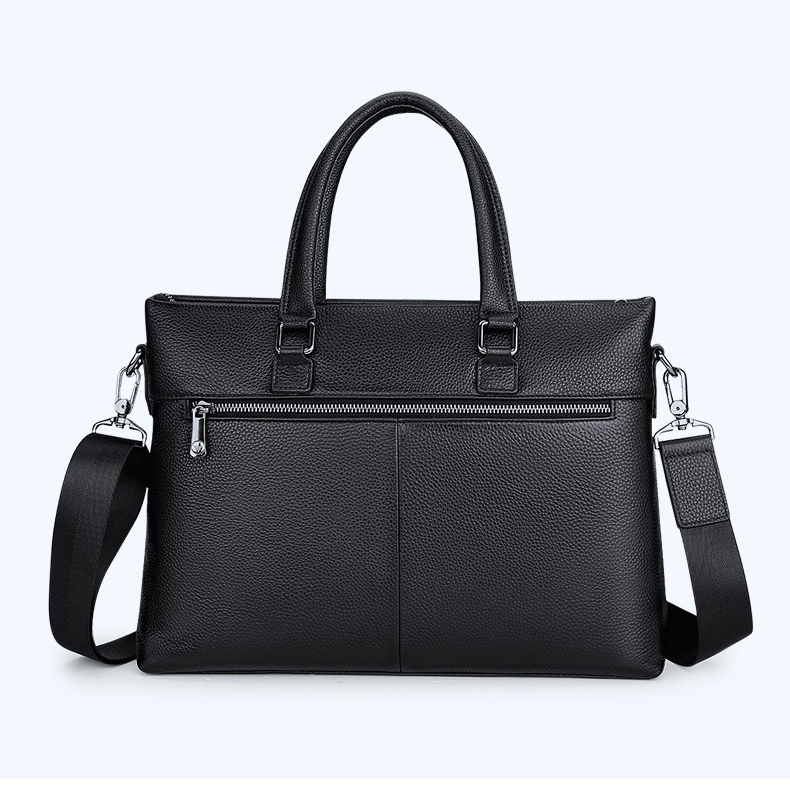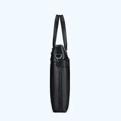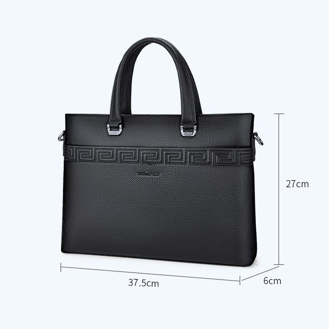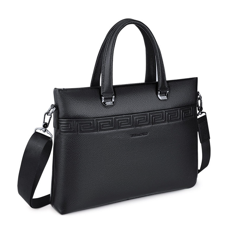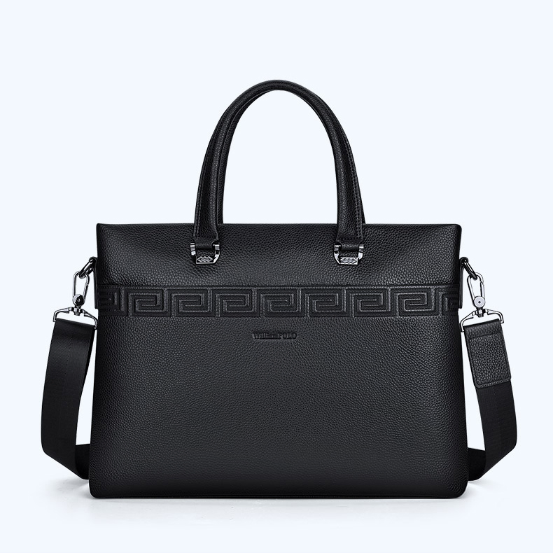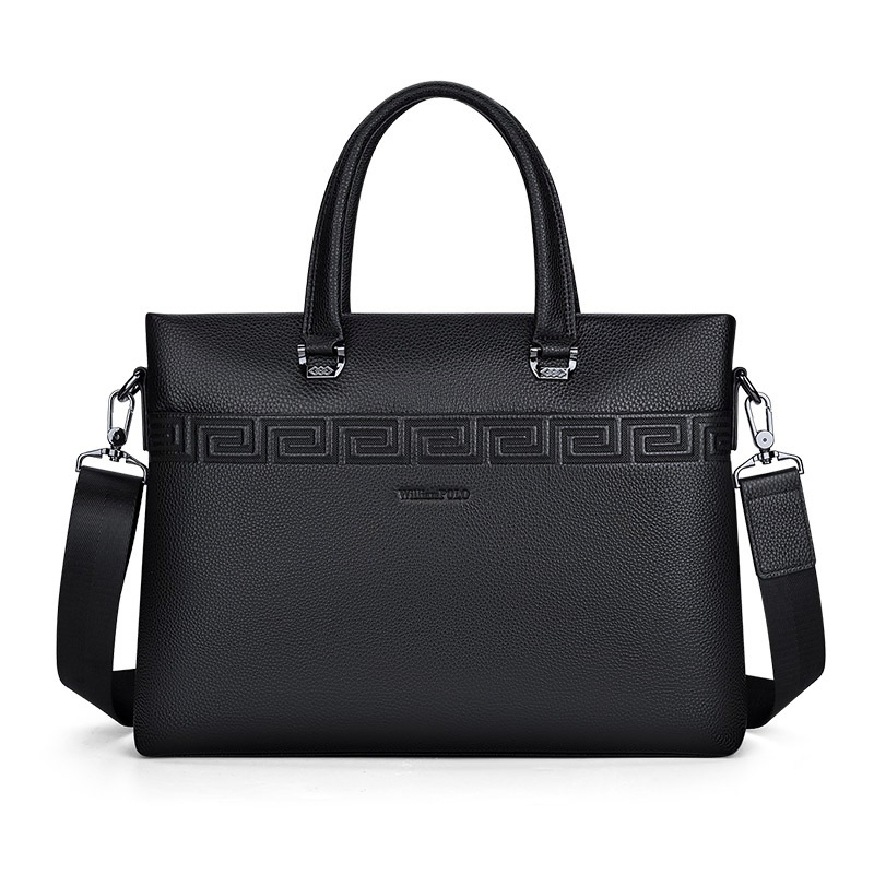 Color: Black Brand: William POLO Upper Material: Genuine Leather (Cowhide) Number of Shoulder straps: Single Opening Method: Zipper Hardness: Soft Shape: Handbag Pattern: Solid Color Lining Material: Polyester Size: 14.76" (L) x 10.62" (H) x 2.36" (W) Features: Multi-function, 14" Computer Compartment, Water proof