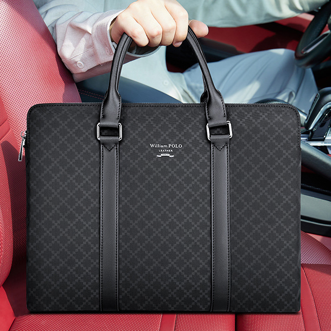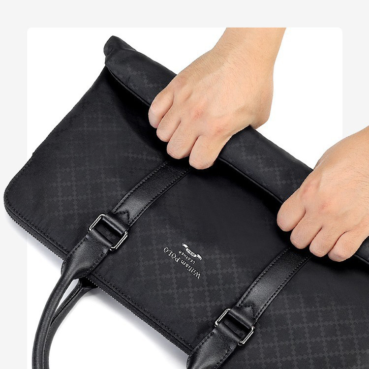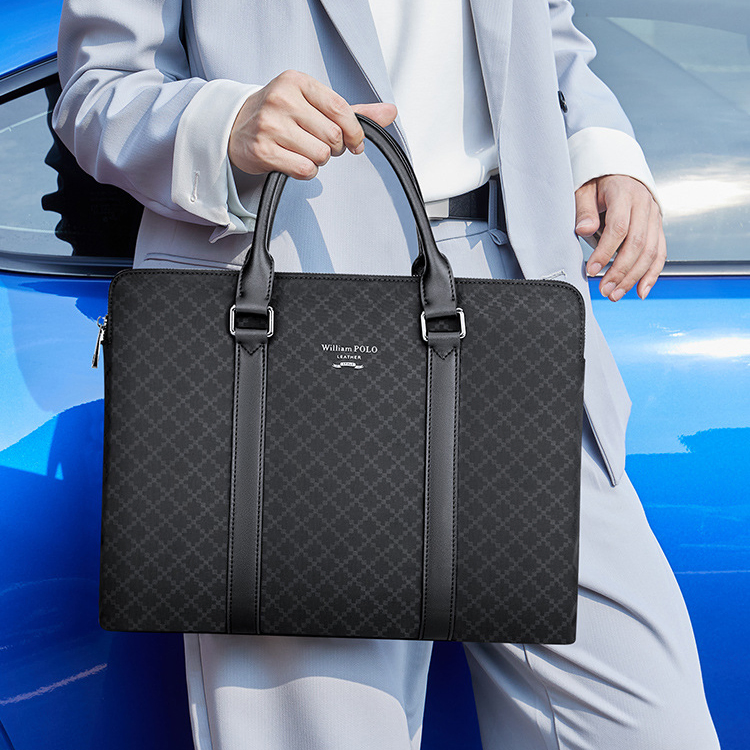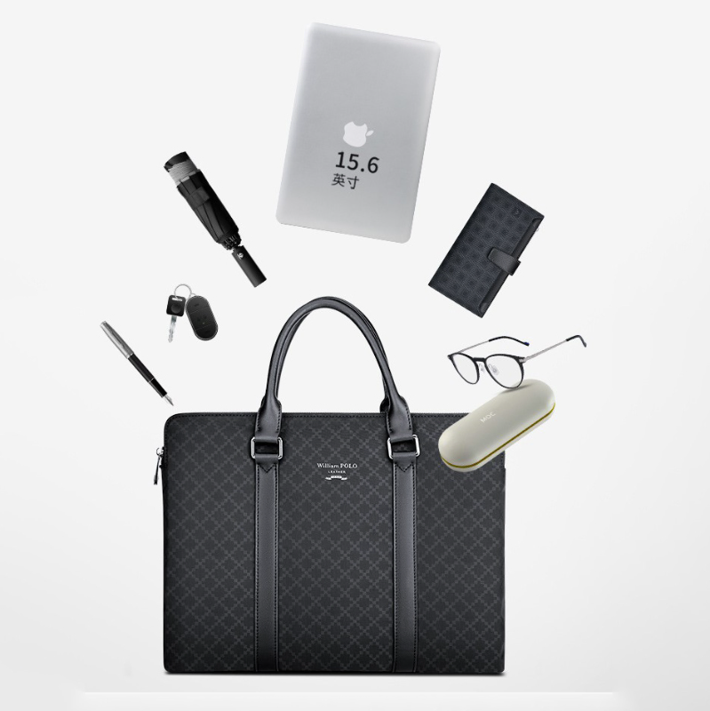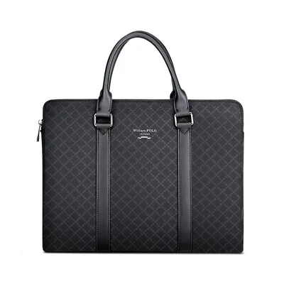 Color: Black Brand: William POLO Upper Material: Microfiber Leather Number of Shoulder straps: Single Opening Method: Zipper Hardness: Soft Shape: Handbag Pattern: Solid Color Lining Material: Polyester Size: 14.96" (L) x 10.63" (H) x 1.97" (W) Features: Multi-function, 14" Computer Compartment, Water proof