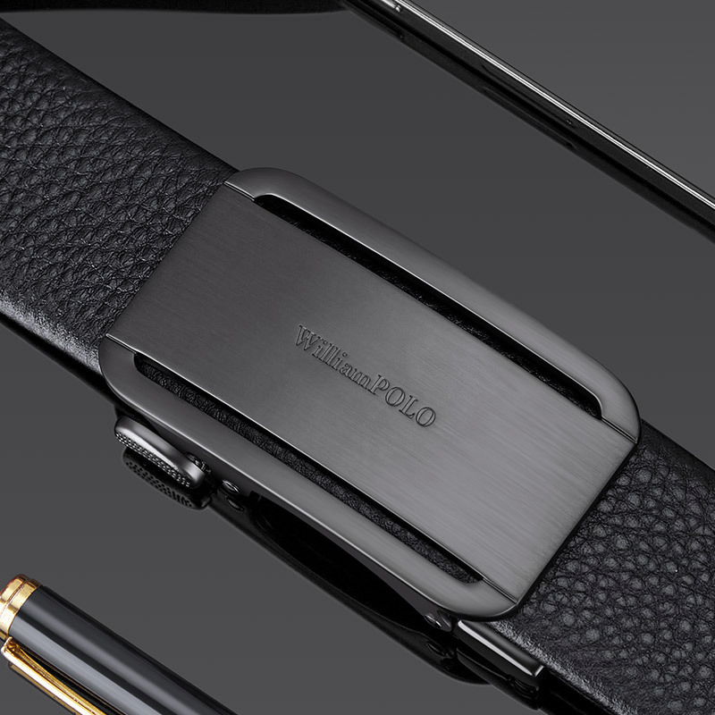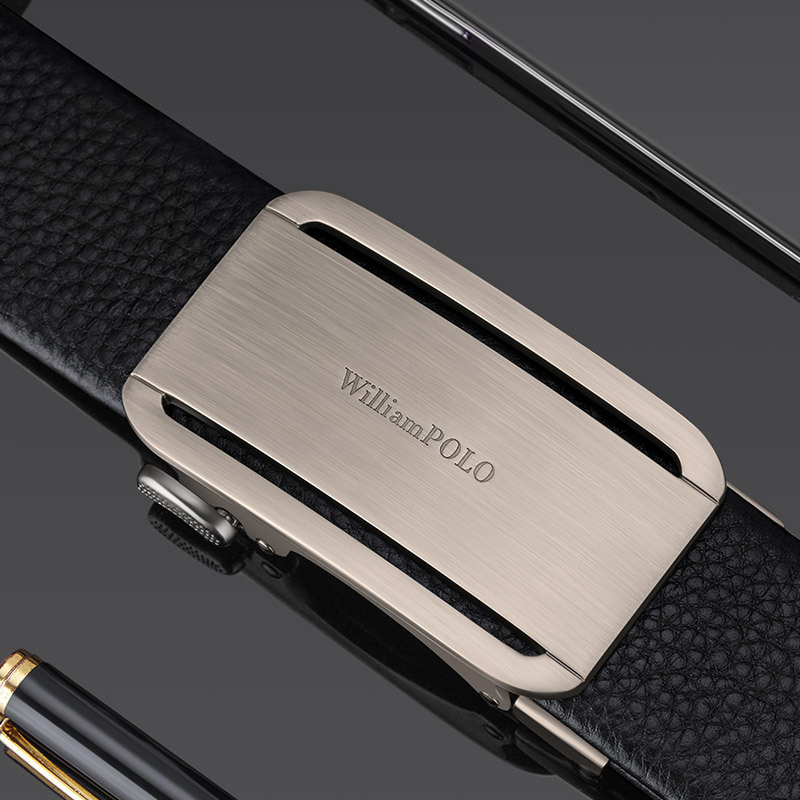 Buckle Color: Gun & Silver BuckleBelt Color: Black BeltBrand: William POLOUpper Material: Genuine LeatherFastening Method: Automatic BuckleLining: PolyesterPattern: Solid ColorLength: 120 cmWidth: 3.8 cmWeight: 350 gm