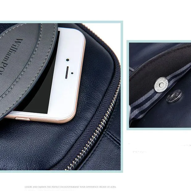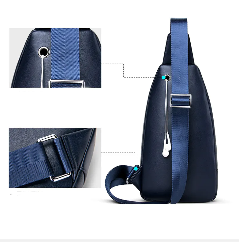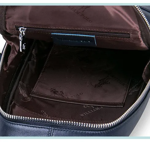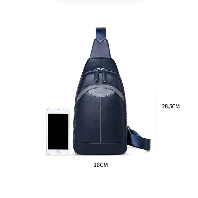 Color: BlueUpper Material: Genuine LeatherOpening Method: ZipperPattern: SolidLining Material: PolyesterFeatures: Wear Resistant, Shock-resistantAccommodated Mobile/Tab Size: 7 inchesSize: 28.5 cm * 18 cm * 5 cmWeight: 500 gm