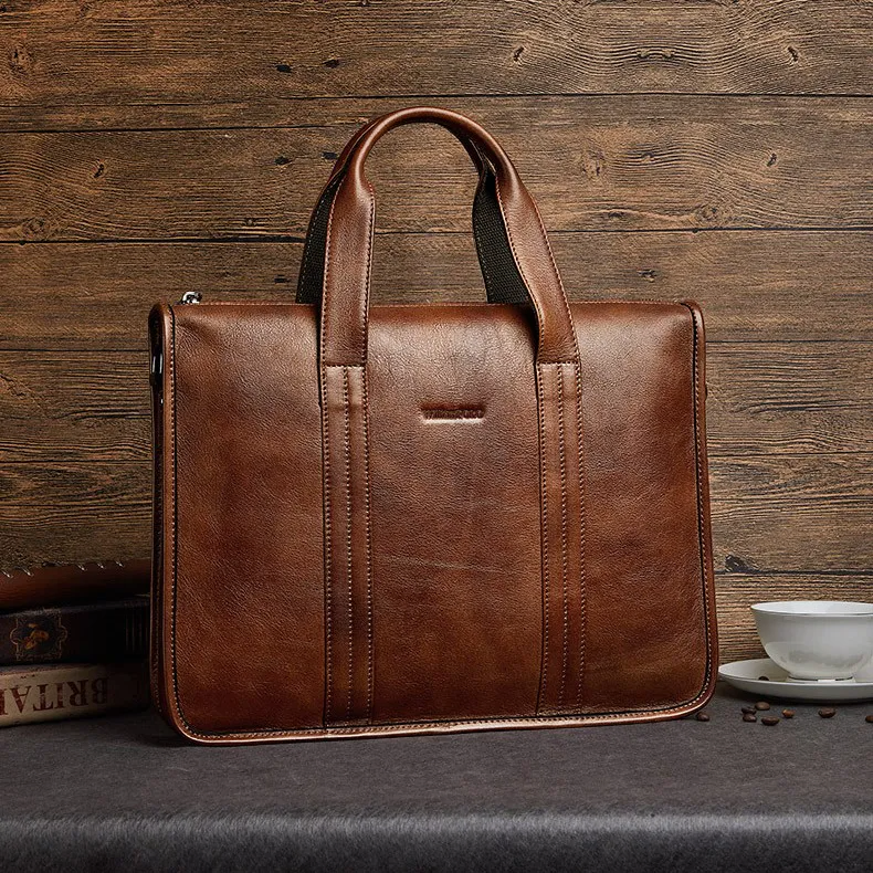 Color: BrownBrand: William POLOUpper Material: Genuine LeatherNumber of Shoulders: straps SingleOpening Method: ZipperShape: HandbagHardness: SoftPattern: Solid ColorLining Material: PolyesterSize: 37.3 cm * 28.3 cm * 5.7 cmFeatures: Waterproof, Multi-function, 14” Computer CompartmentWeight: 1 kg