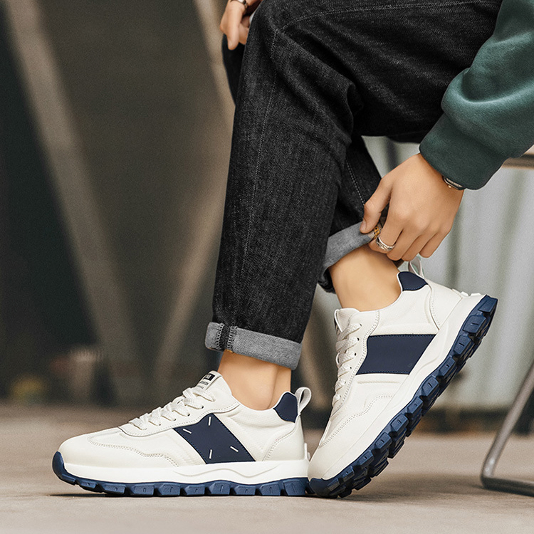 - Color: White & Blue, White & BrownUpper Material: PU Leather + Mesh MaterialOutsole Material: Rubber Foam SoleInsole Material: PU LeatherToe Shape: Round HeadClosure Type: Lace UpPattern Type: SolidFeatures: Breathable, wear-resistant, lightweight, anti slip